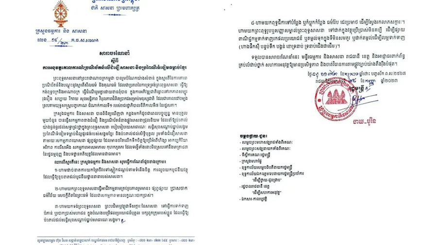 ភ្នំពេញ៖រដ្ឋមន្រ្តីក្រសួងធម្មការ និងសាសនា ឯកឧត្តម ចាយ បូរិន បានចេញសារាចរណែនាំនូវការអនុវត្តគោលការណ៍ប្រណិប័តន៍លើជំនឿ សាសនា និងប្រពៃណីទំនៀមទម្លាប់ខ្មែរ បន្ទាប់ពីមានបុគ្គលមួយចំនួន បានធ្វើសកម្មភាពខាងជំនឿ និងប្រណិប័តន៍ខាងផ្លូវសាសនាជ្រុលនិយម នាំឱ្យប៉ះពាល់យ៉ាងធ្ងន់ធ្ងរព្រះពុទ្ធសាសនា។