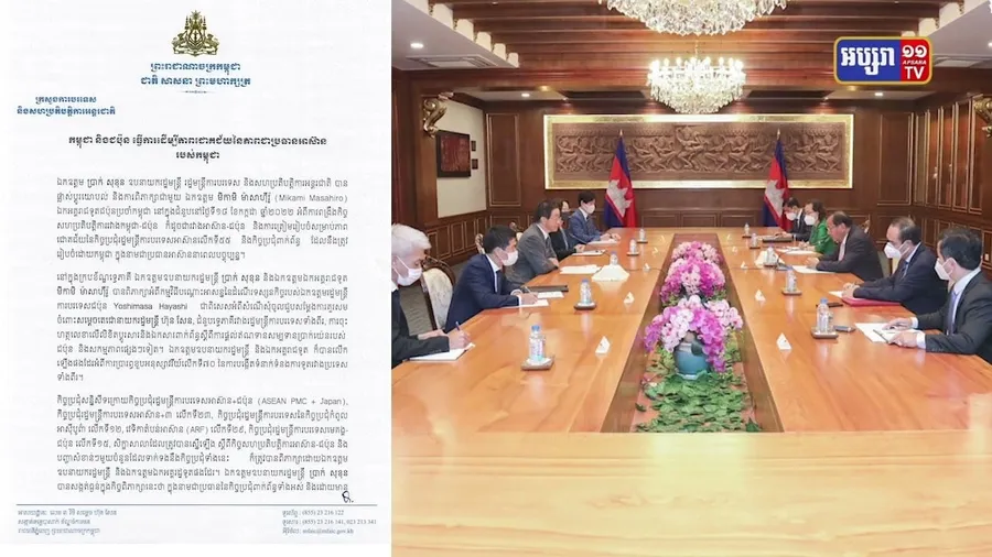 គម្រោងដំណើរទស្សនកិច្ចដែលនឹងធ្វើប្រមាណ២សប្តាហ៍ទៅមុខទៀតនេះ បានលើកឡើងក្នុង កិច្ច ពិភាក្សា មួយរវាងរដ្ឋមន្ត្រីការបរទេសកម្ពុជាលោក ប្រាក់ សុខុន ជាមួយនឹងឯកអគ្គរាជទូត ជប៉ុនប្រចាំកម្ពុជាលោកមិកាមិ ម៉ាសាហ៊ីរ៉ូ កាលពីថ្ងៃទី១៨កក្កដាឆ្នាំ២០២២។