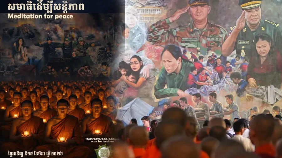 នៅល្ងាចថ្ងៃអាទិត្យ ទី១៥ ខែមីនា ចុងសប្តាហ៍នេះ ព្រះសង្ឃ តាជី យាយជី ប្រមាណជា៥០០អង្គ/នាក់ នឹងរួមគ្នាធ្វើសមាធិនៅខាងមុខផ្ទាំងគំនូរ “សិល្បៈ ដើម្បីសន្តិភាព” នាសួនវត្តបទុមវតី រាជធានីភ្នំពេញ ដោយមានការនិមន្តចូលរួមពីសម្តេច គូ សុភាព និងអង្គសម្តេច គីម សន។