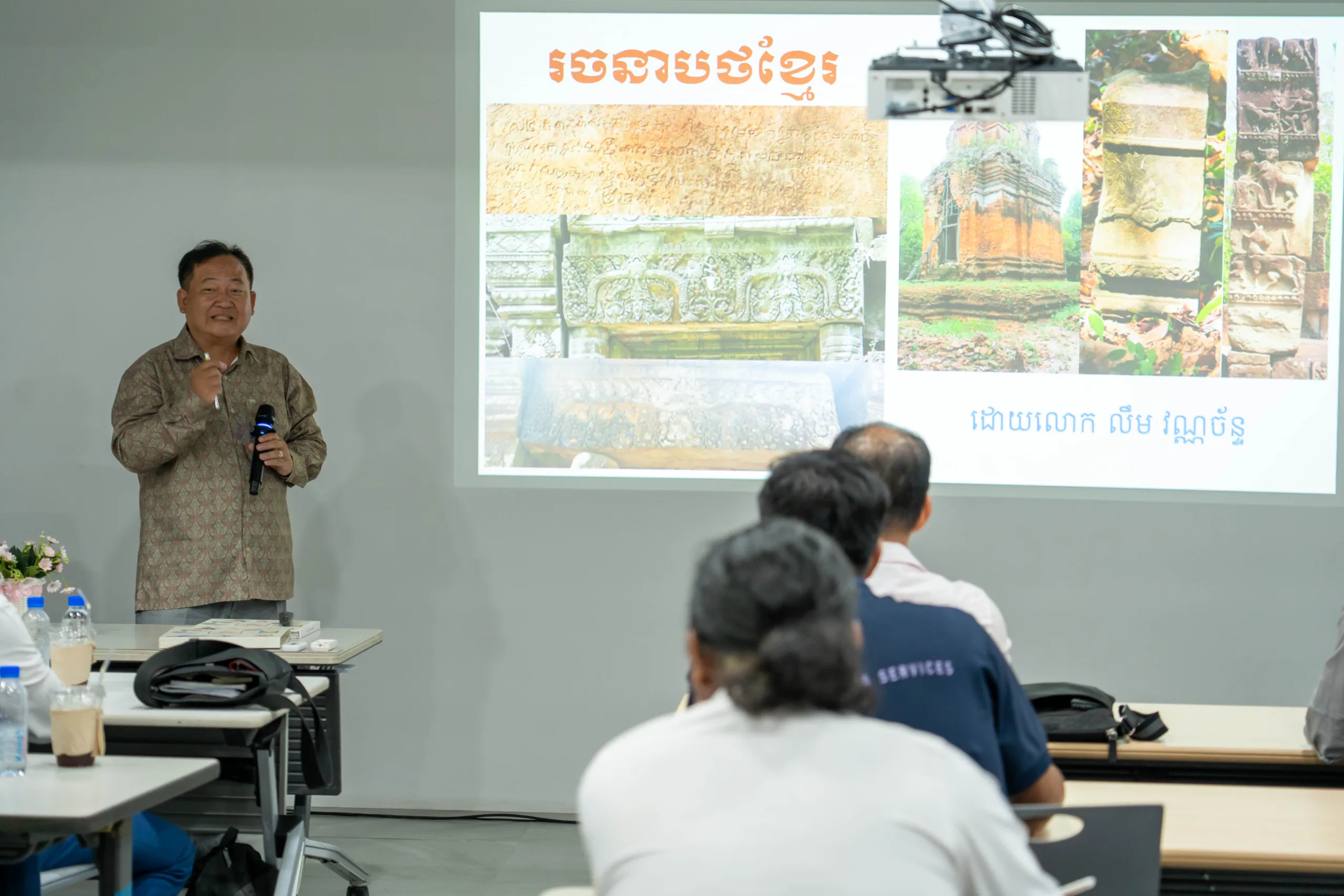 សិក្ខាសាលាដែលធ្វើឡើងពេញមួយថ្ងៃនោះ មានការចូលរួមធ្វើបទបង្ហាញពីគណៈស្ថាបត្យករ និងសមាគមស្ថាបត្យករខ្មែរ ព្រមទាំងអ្នកបុរាណវិទូ ដូចជា ឯកឧត្តម ជា ច័ន្ទថែបរ៉ាស, ឯកឧត្តម គង់ កុសល, ឯកឧត្តម អ៊ុនផេង ពុធវិសាល ក៏ដូចជា លោក លឹម វណ្ណច័ន្ទ។ វាគ្មិនទាំងអស់បានចែករំលែកនូវចំណេះដឹង បច្ចេកទេស ក៏ដូចជាប្រវត្តិសាស្ត្រ ដើម្បីឱ្យអ្នកផលិតមាតិកា អ្នកថតរូប បានយល់ពីស្ថាបត្យកម្ម តួនាទីរបស់ស្ថាបត្យកម្មក្នុងការកសាងសង្គម ការថែរក្សាសន្តិភាព និងការចងក្រងឯកសារប្រវត្តិសាស្រ្ត។