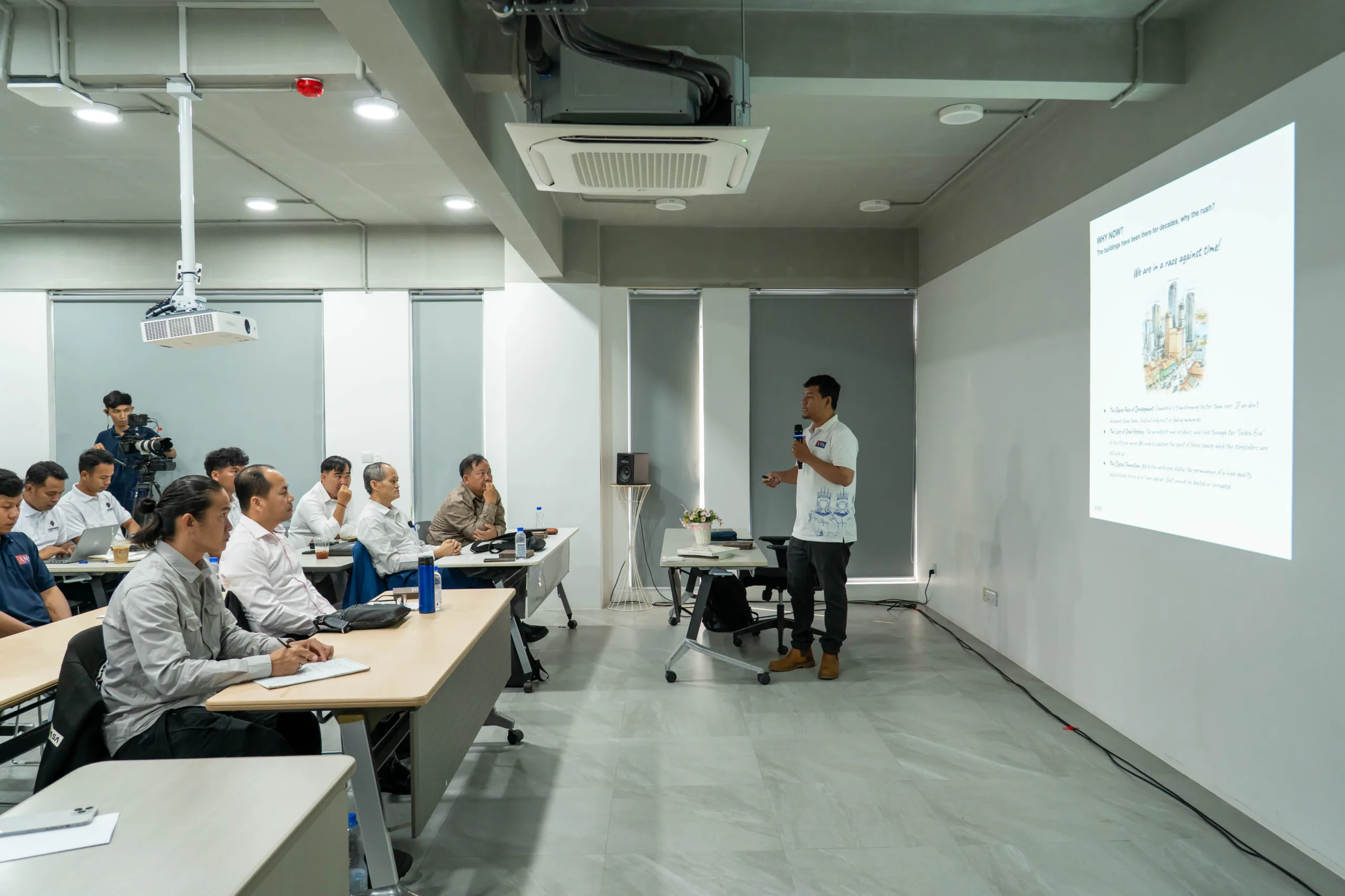 អ្នកថតរូប អ្នកផលិតមាតិកា មកពីតំបន់ផ្សេងៗក្នុងប្រទេសកម្ពុជា កាលពីពេលថ្មីៗនេះ បានជួបជុំគ្នាក្នុងសិក្ខាសាលា ស្តីពី “ស្ថាបត្យកម្មខ្មែរ” ដែលរៀបចំឡើងដោយក្រុមហ៊ុន Apara Media Services (AMS) ដើម្បីស្វែងយល់ពីស្ថាបត្យកម្ម និងតួនាទីរបស់ស្ថាបត្យកម្ម ព្រមទាំងចូលរួមចំណែកចងក្រងសៀវភៅរូបថតពីស្ថាបត្យកម្មខ្មែរទាំង៣សម័យកាល។
