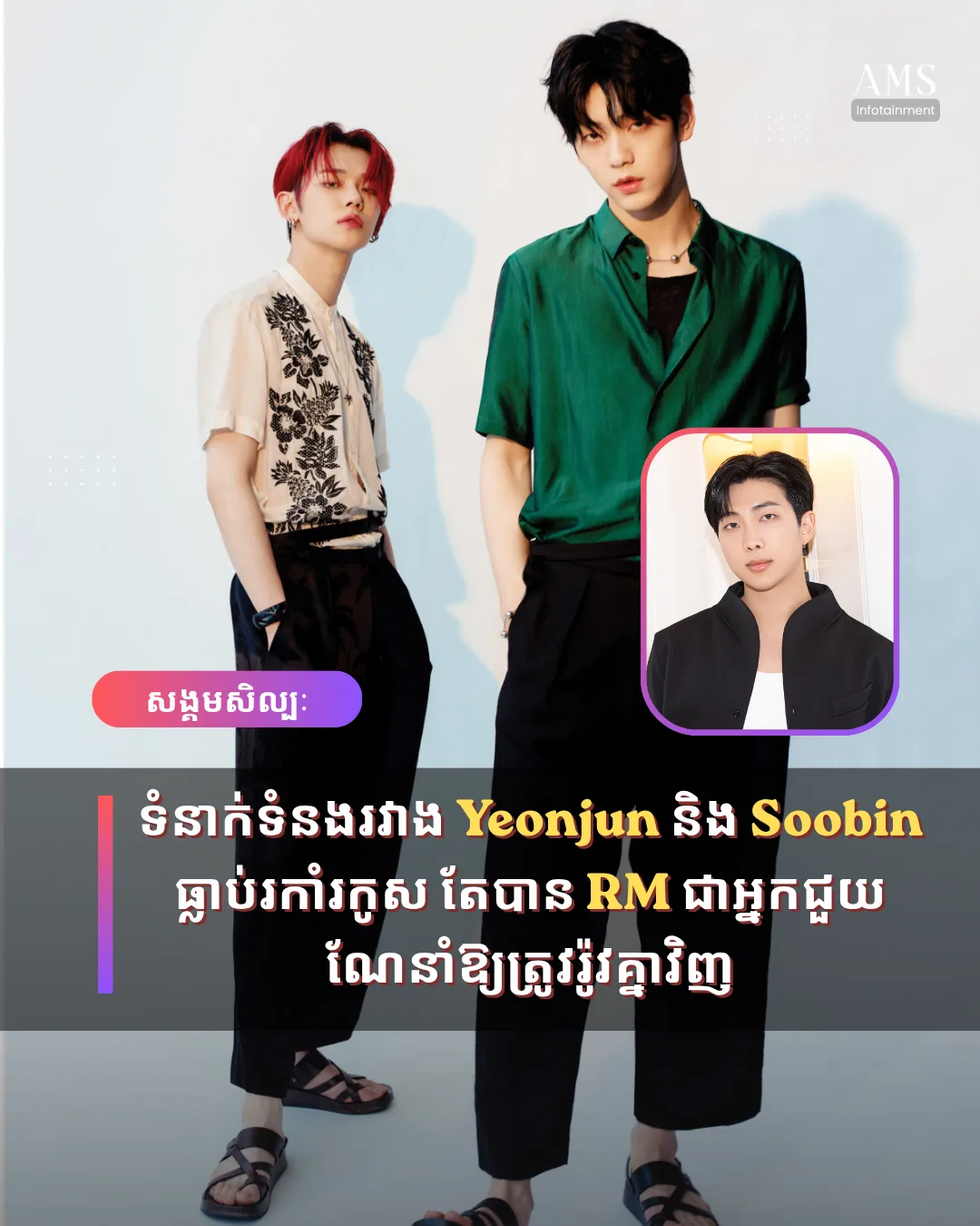 តាមរយៈការណែនំារបស់ RM សមាជិកក្រុម TXT ទាំង ២រូប គឺ Yeonjun និង Soobin ចាប់ផ្ដើមបើកចិត្តនិយាយគ្នាសាជាថ្មី ដែលធ្វើឱ្យទំនាក់ទំនងអ្នកទាំងពីរចាប់ផ្ដើមប្រសើរឡើងវិញ៕