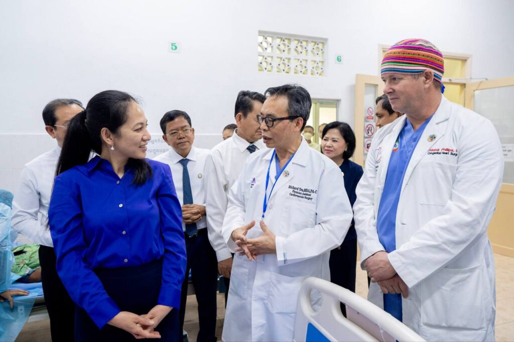 លោកជំទាវបណ្ឌិត ពេជ ចន្ទមុន្នី ហ៊ុនម៉ាណែត បានអញ្ជើញមកមន្ទីរពេទ្យកុមារជាតិដើម្បីពិនិត្យវឌ្ឍនភាពគម្រោងវះកាត់បេះដូងកុមារ ដែលជាកិច្ចសហប្រតិបត្តិការរវាងមន្ទីរពេទ្យកុមារជាតិ និងសមាគមសុខាភិបាលខ្មែរនៅអាមេរិក (CHPAA) ។ គម្រោងដ៏វិសេសវិសាលនេះ ត្រូវបានបង្កើតឡើង និងអនុវត្តក្នុងគោលបំណងជួយព្យាបាលដល់កុមារទាំងឡាយដែលមានជំងឺបេះដូងពីកំណើត រួមទាំងជំងឺបេះដូងផ្សេងៗ តាមរយៈព្យាបាលវះកាត់ដោយមិនគិតថ្លៃ ដើម្បីផ្តល់មកវិញនូវសុខុមាលភាព និងជិវិតដ៏ត្រចះត្រចង់ ដល់កុមារកម្ពុជា។ គម្រោងនេះ ក៏ជួយបណ្តុះបណ្តាលបន្ថែមតាមរយៈការផ្លាស់ប្តូរបទពិសោធន៍គ្នាទៅវិញទៅមករវាងវេជ្ជបណ្ឌិតកម្ពុជា និងវេជ្ជបណ្ឌិតអាមេរិក ការជួយទ្រទ្រង់ផ្នែកឧបករណ៍បច្ចេកទេសវះកាត់ និងការជួយគាំទ្រផ្នែកស្មារតីគ្នាជាដើម។