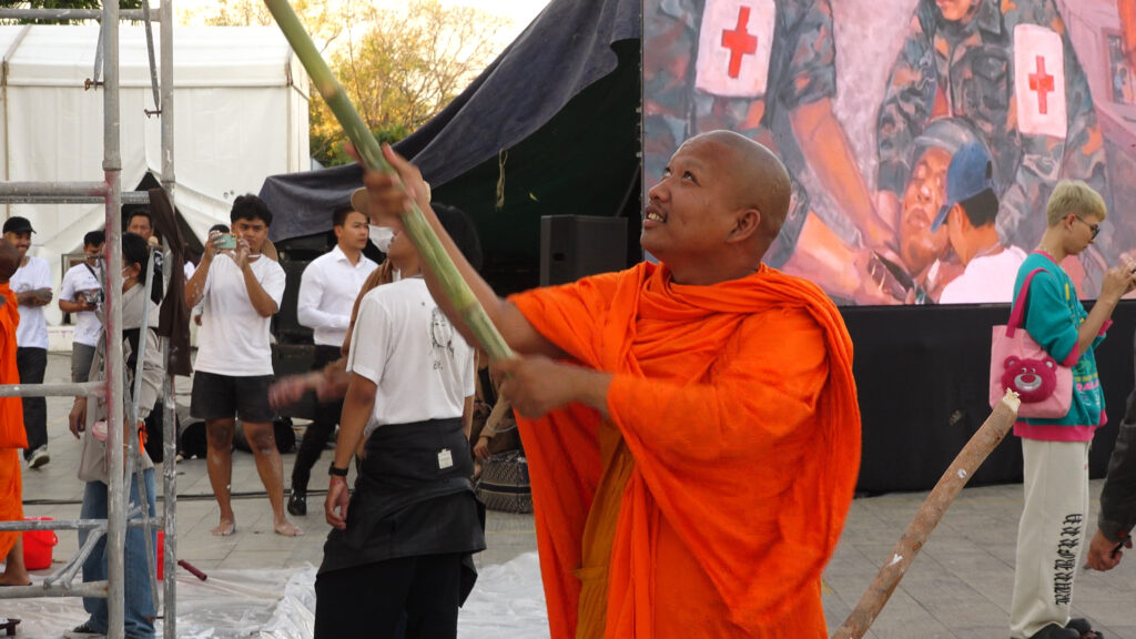 គួរបញ្ជាក់ថា ផ្ទាំងរូបគំនូរសិល្បៈដើម្បីសន្តិភាព មានបណ្ដោយប្រវែង ៣៥ម៉ែត្រ កម្ពស់ ៥ម៉ែត្រ ។ ផ្ទាំងគំនូរដ៏ធំមួយនេះ នឹងរំលេចអំពីការឈឺចាប់ និងសោកនាដកម្មបណ្តាលមកពីការឈ្លានពានលើអធិបតេយ្យភាព និងបូរណភាពទឹកដីកម្ពុជា បានចាប់ផ្តើមគូរហើយ នៅទីតាំងសួនមុខវត្តបទុមវតី។ ផ្ទាំងគំនូរនេះគ្រោងនឹងបញ្ចប់ទាំងស្រុង ក្នុងរយៈពេល ១២ ថ្ងៃខាងមុខ ដោយនៅថ្ងៃទី ២០ ខែកុម្ភៈ សាធារណជនជាច្រើន បានចូលរួមលាបថ្នាំទ្រនាប់ពណ៌ ក្នុងរយៈពេល ២ ថ្ងៃដំបូង ដែលបើកឱកាសឱ្យប្រជាពលរដ្ឋចូលរួមបង្ហាញមតិ និងការគាំទ្រតាមរយៈសិល្បៈ ។