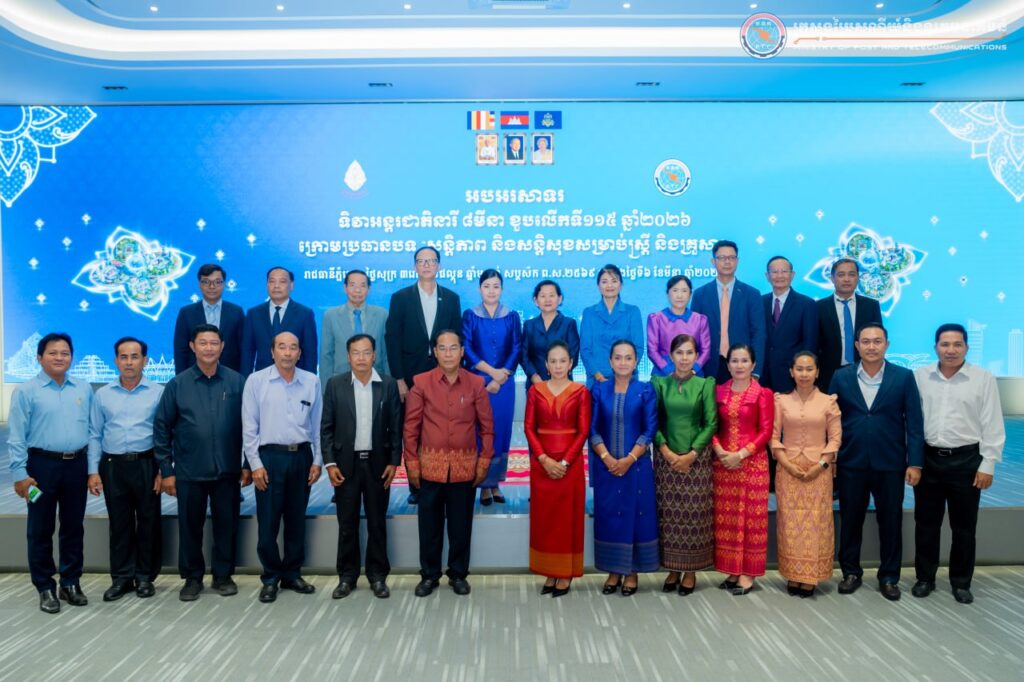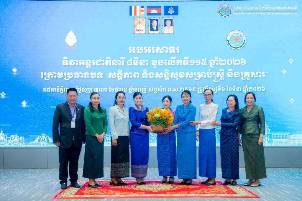 ភ្នំពេញ៖ លោកជំទាវ ប្រាក់ ច័ន្ទណយ រដ្ឋលេខាធិការ និងជាប្រធានក្រុមការងារយេនឌ័រក្រសួងប្រៃសណីយ៍និងទូរគមនាគមន៍ (ក.ប.ទ.) និងលោកជំទាវ ហ៊ូ សាមិត្ត រដ្ឋលេខាធិការក្រសួងកិច្ចការនារី នៅរសៀលថ្ងៃទី៦ ខែមីនា ឆ្នាំ២០២៦ បានអញ្ជើញជាអធិបតីក្នុងពិធីអបអរសាទរទិវាអន្តរជាតិនារី ៨មីនា ខួបលើកទី១១៥ ឆ្នាំ២០២៦ ក្រោមប្រធានបទ “សន្តិភាព និងសន្តិសុខសម្រាប់ស្ត្រី និងគ្រួសារ” នៅទីស្តីការ ក.ប.ទ. ដោយមានការអញ្ជើញចូលរួមពី ថ្នាក់ដឹកនាំ និងមន្ត្រីរាជការជានារីនៃក្រសួងប្រៃសណីយ៍និងទូរគមនាគមន៍ និងមន្ទីរ ប.ទ.ខេត្ត។